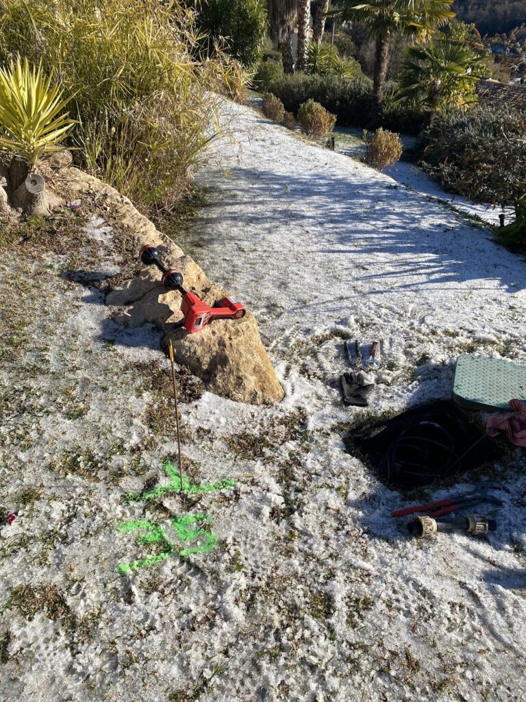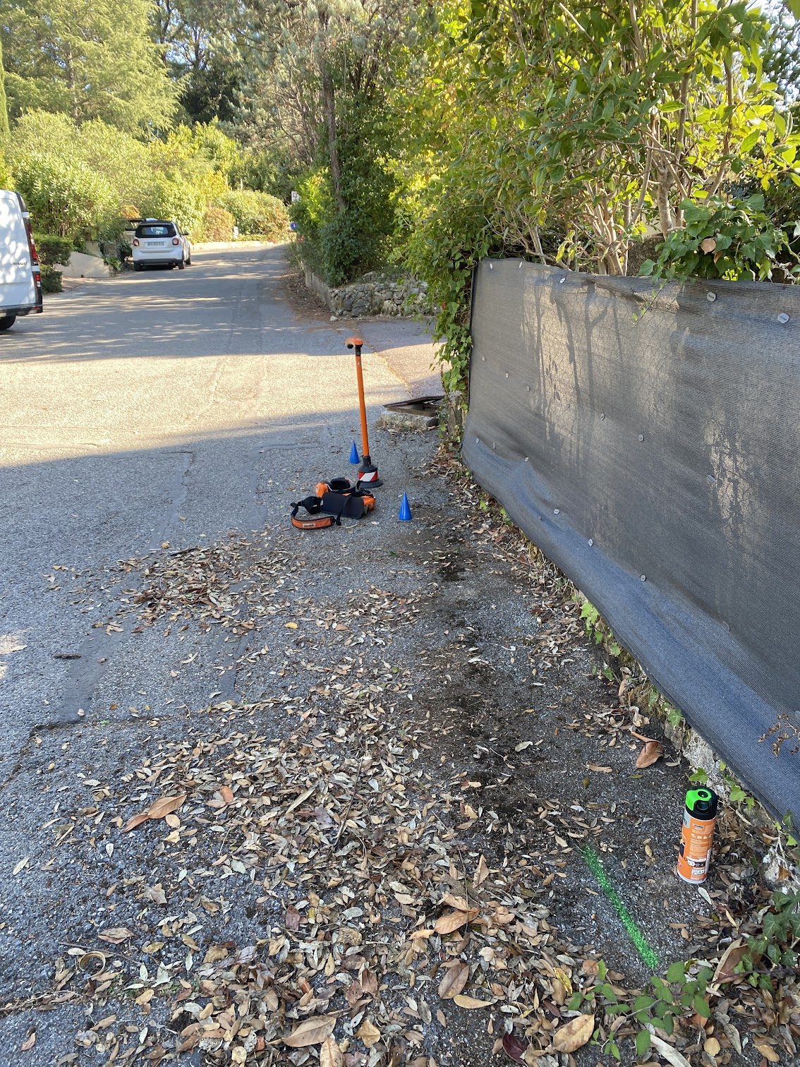 Nous préparons ensuite soigneusement le terrain afin de sécuriser l’intervention. L’organisation des accès au jardin et aux zones de passage des canalisations enterrées facilite l’installation de notre appareillage spécialisé et limite toute gêne pendant la détection.